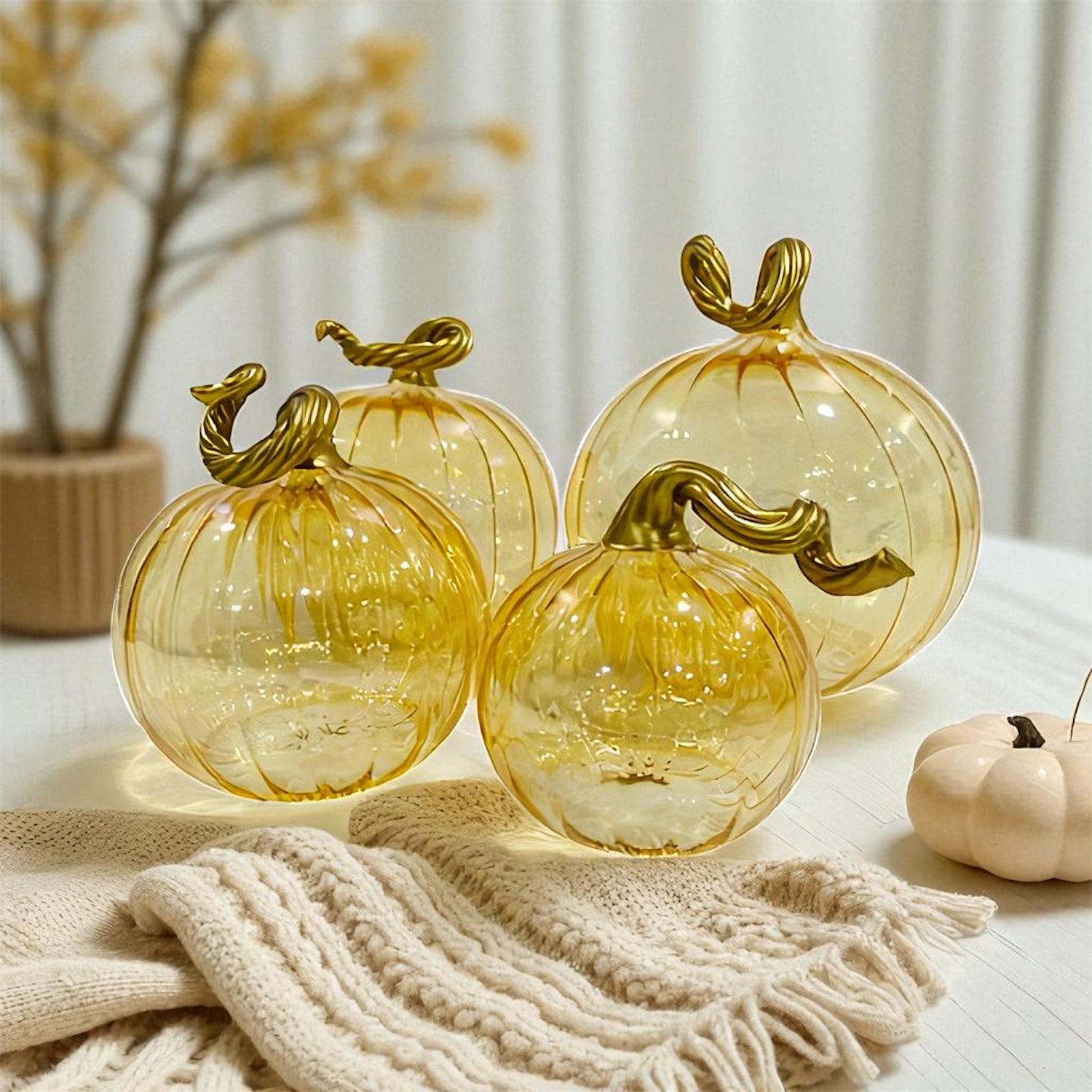 Citrouille de table en verre soufflé avec or