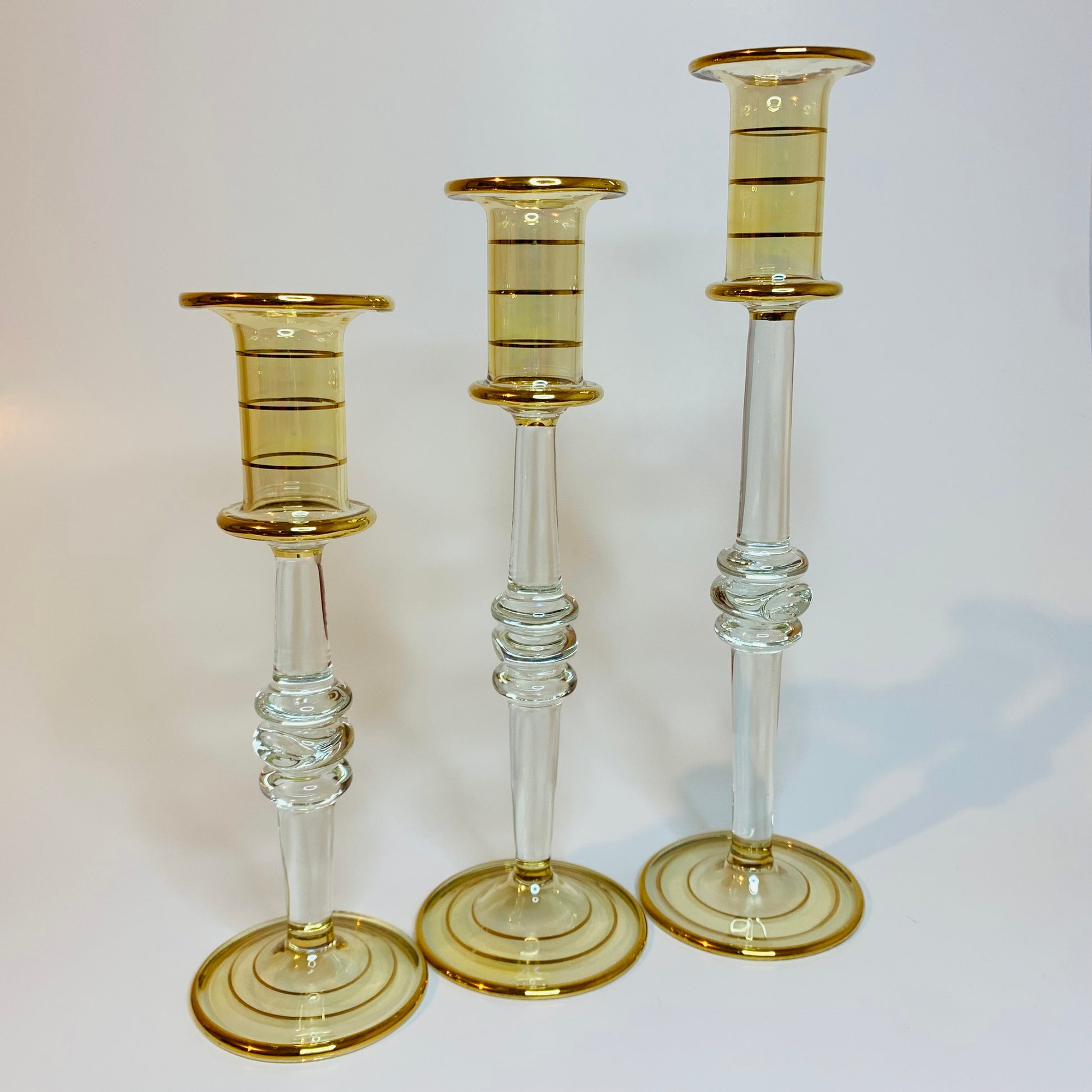 Create a warm ambiance and add a distinct style to your home with these beautiful long stem hand blown candle holders. Artfully created by skilled glass blowers in the heart of old Cairo, Egypt. The art of glass blowing began in Egypt at least in the 3rd Century A.D. based on a poem written on papyrus that describes the technique.